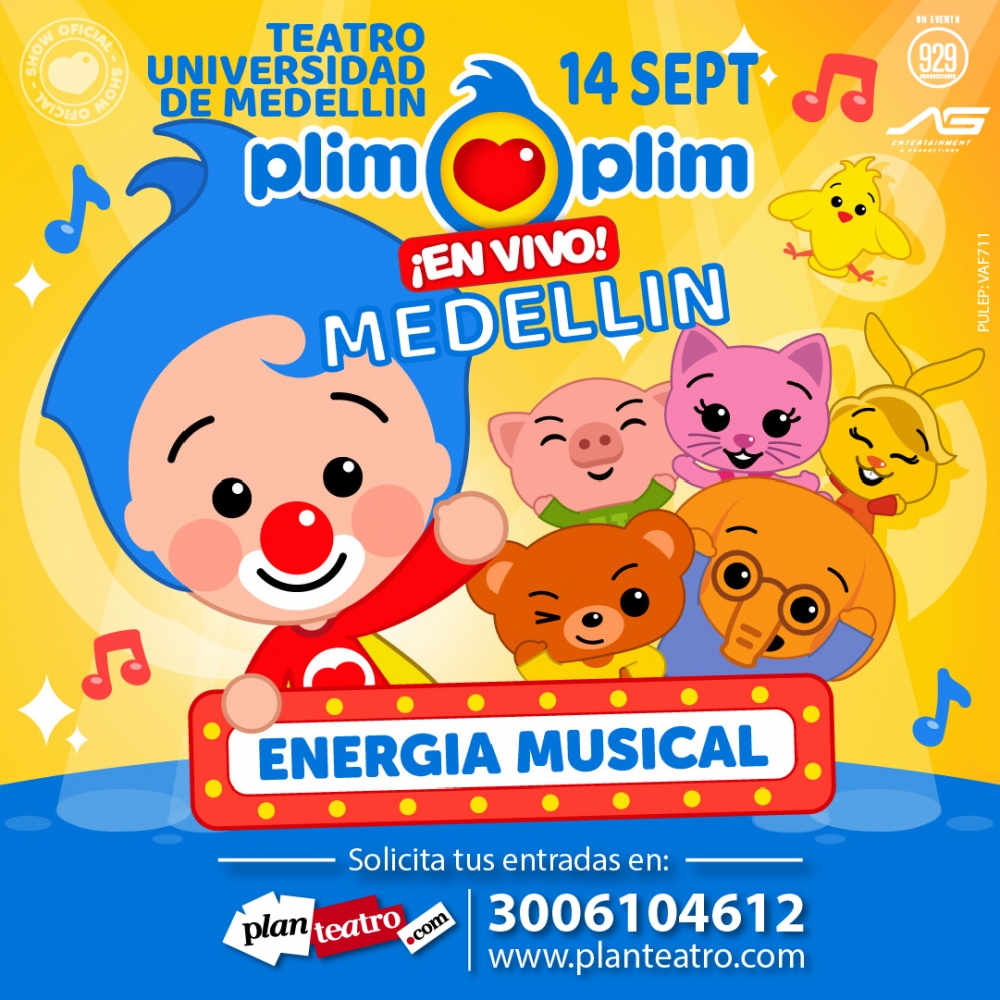 ¡Llega a Medellin el Musical imperdible para toda la familia! Para cantar y bailar los éxitos musicales del Payaso Plim Plim y compartir hábitos saludables y valores positivos como la amistad, el respeto y el cuidado del medio ambiente